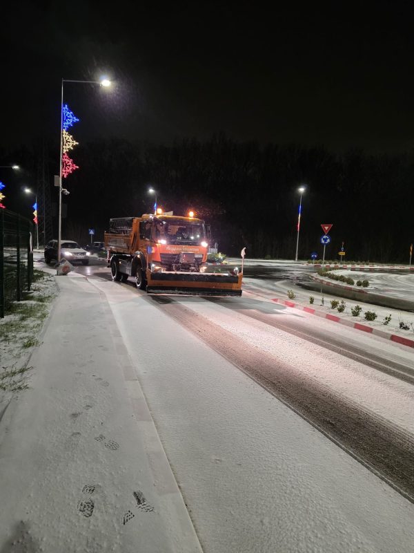 Având în vedere condițiile meteorologice nefavorabile și riscul crescut de formare a poleiului, echipele noastre intervin permanent pe străzile orașului Voluntari pentru asigurarea siguranței rutiere și pietonale.